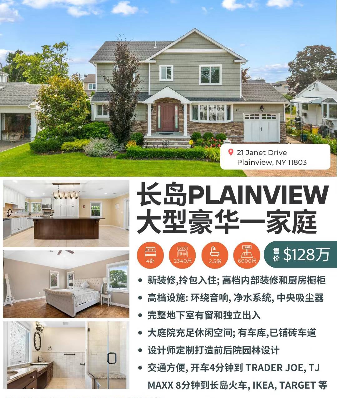 长岛好区PLAINVIEW豪华一家庭