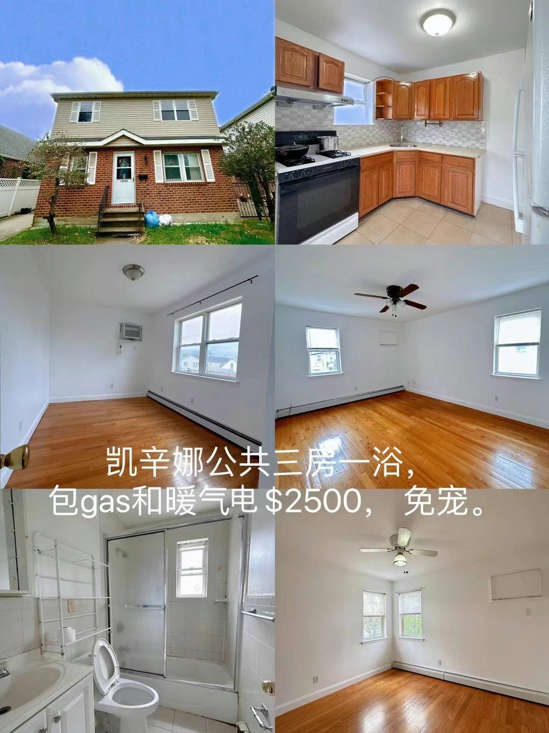 超大三房一浴, 全新专修, 光线明亮,包水,电,暖气和gas, 门口公交车直到main st, 免宠,全包$2500,另有车位出租$150