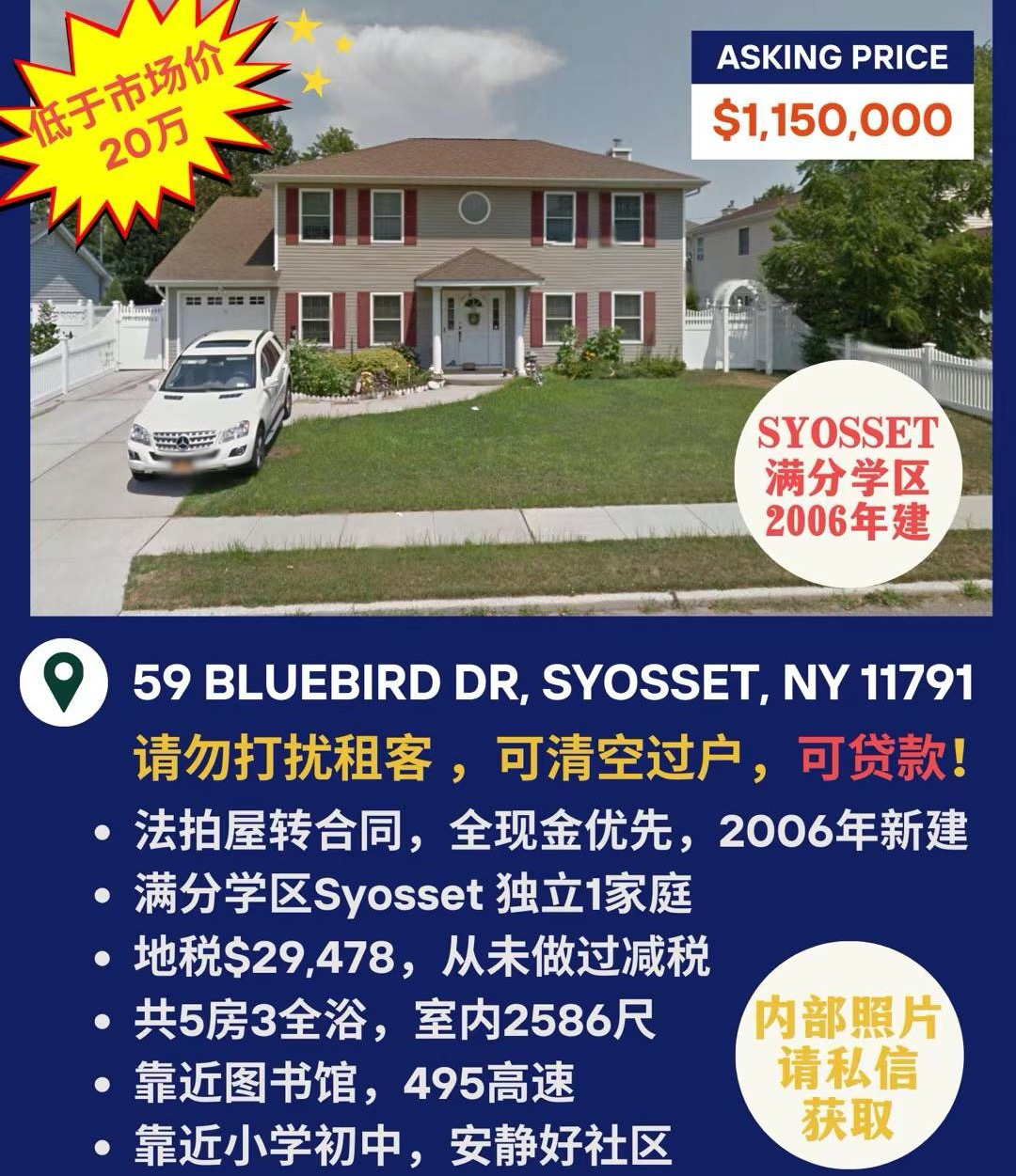 Syosset满分学区2006年新建1家庭,低于市场价20万