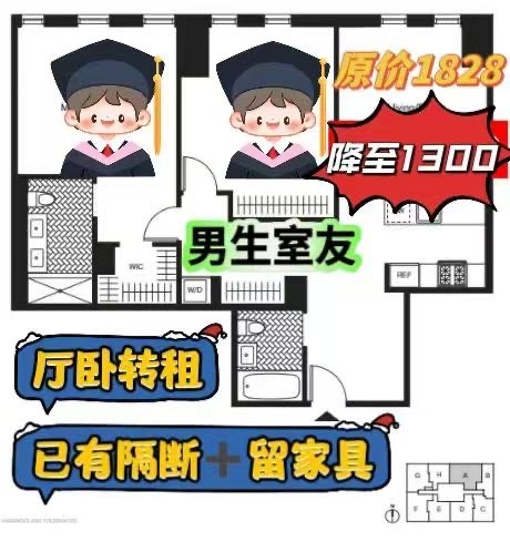 我是NYU学生,2025年回国网络上课,原居住客厅卧室(己打好隔断)大降价转租。