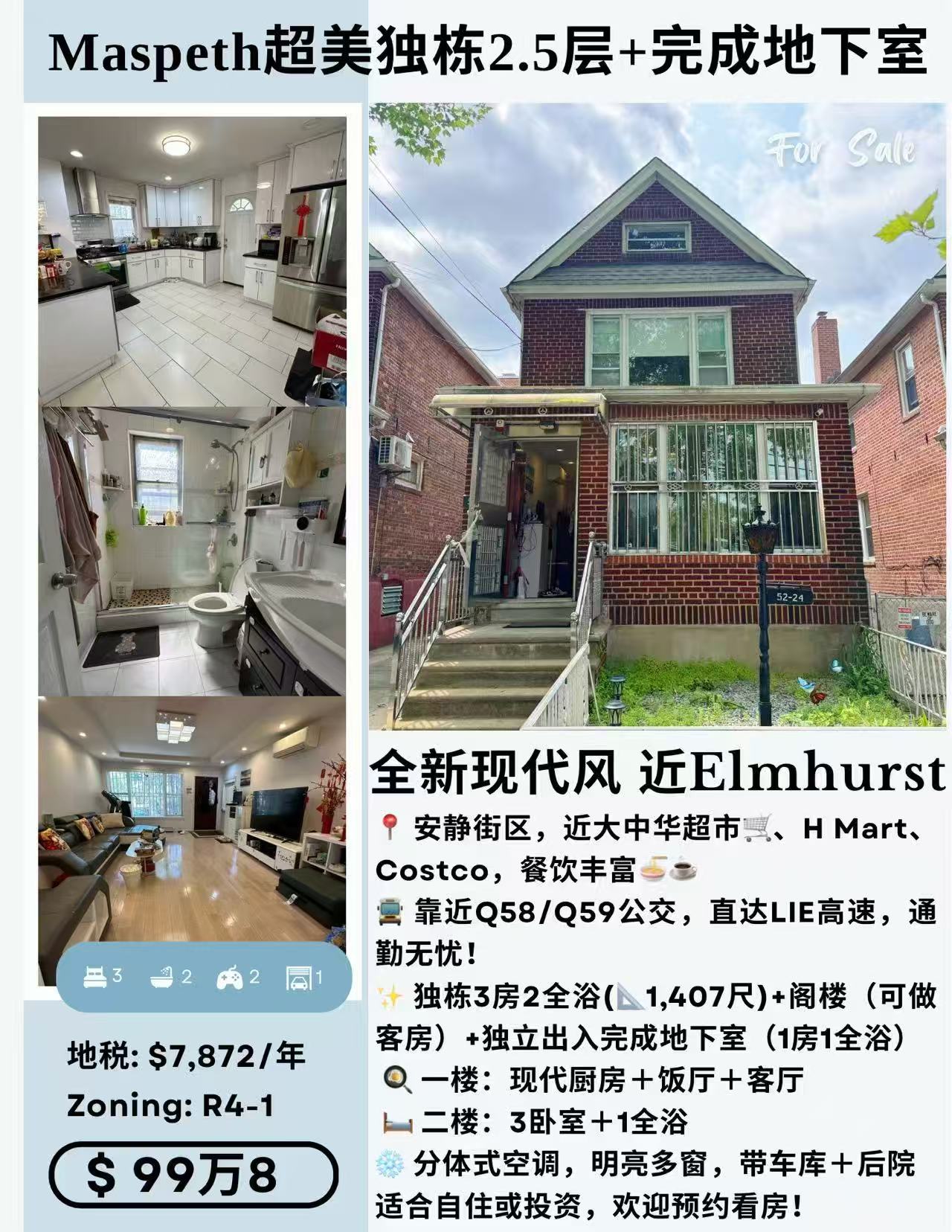 ✨ 独栋3房2全浴(📐1,407尺)+阁楼(可做客房)+完成地下室(大空间+1全浴)