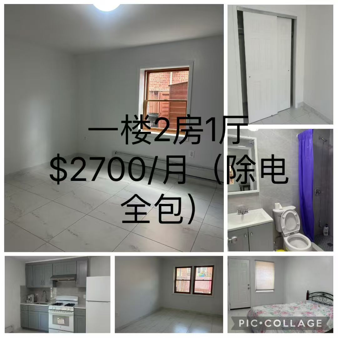 白石镇中心全新装修一楼2房1厅约900尺$2700/月(除电全包)走路3分钟到华联超市,巴士,ps21小学,JHS185中学和大公园。无宠!需查收入和信用!欢迎租客