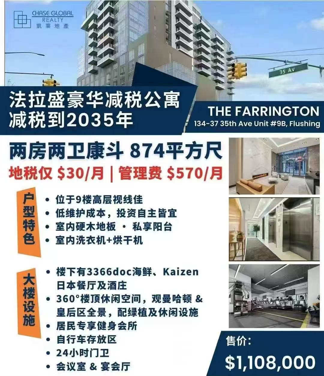 法拉盛中心 緬街/ 北方大道 僅一個街口為數不多還有地稅減免的高端樓盤之一